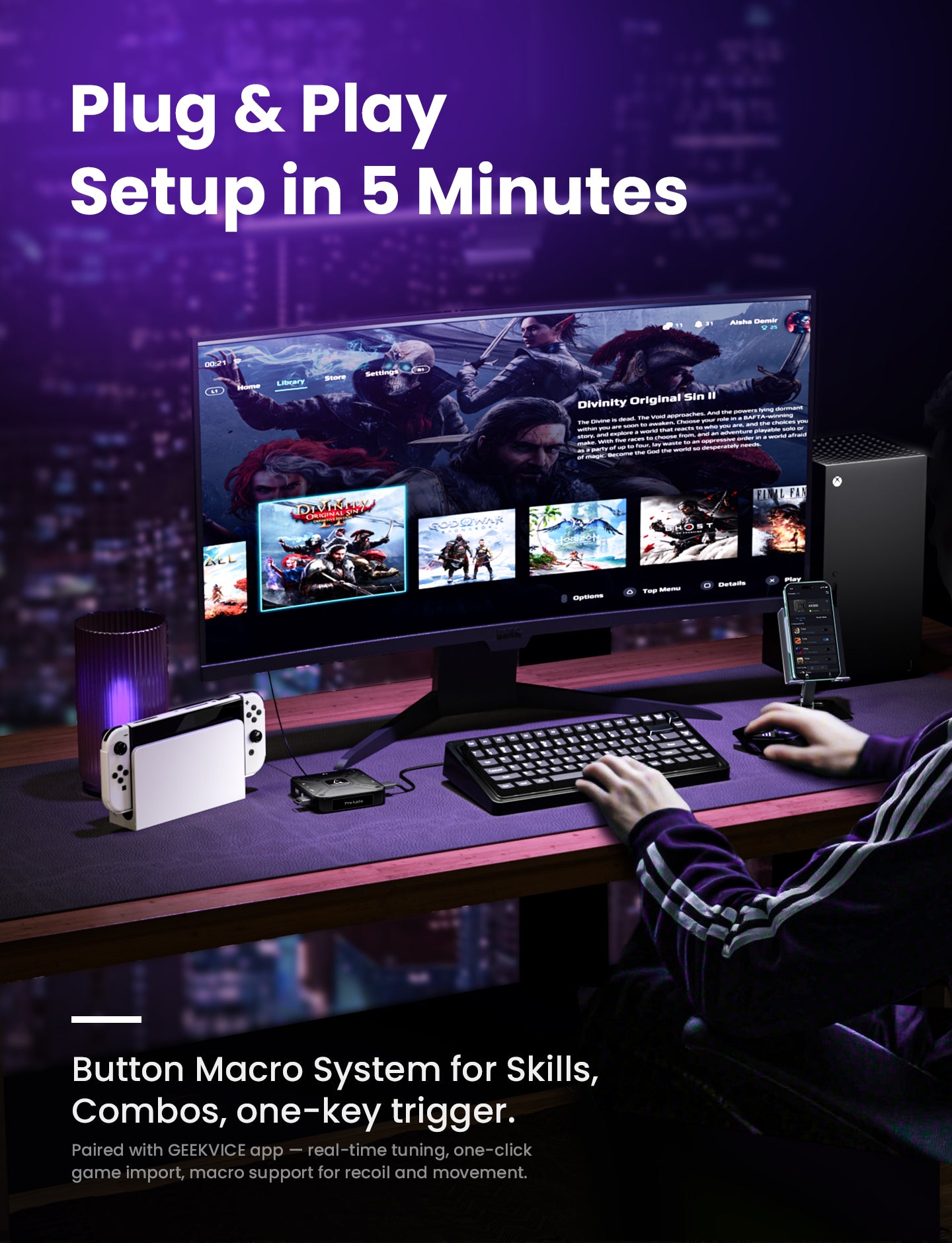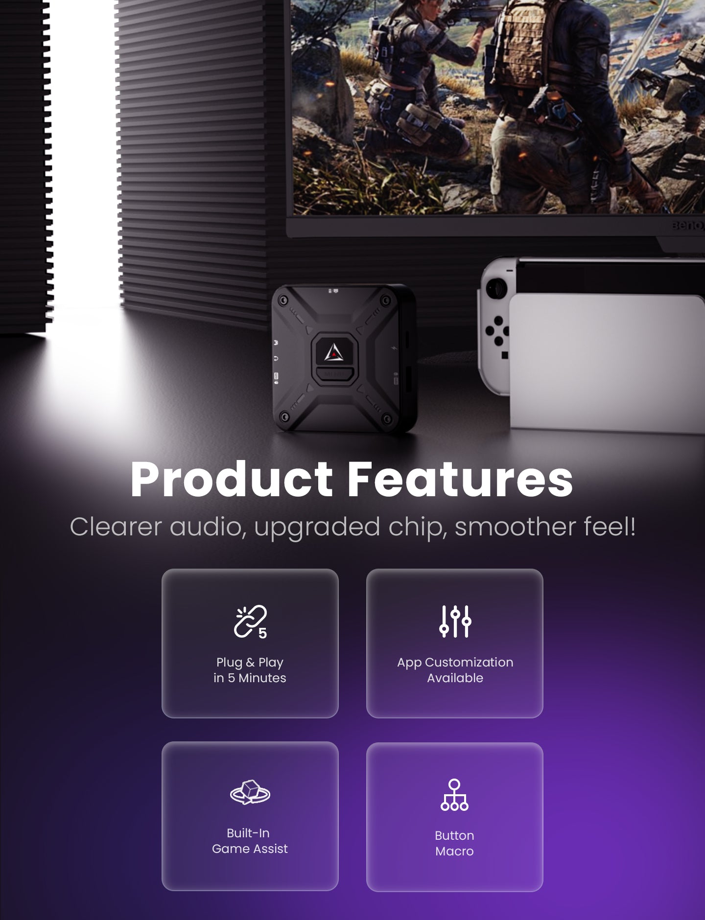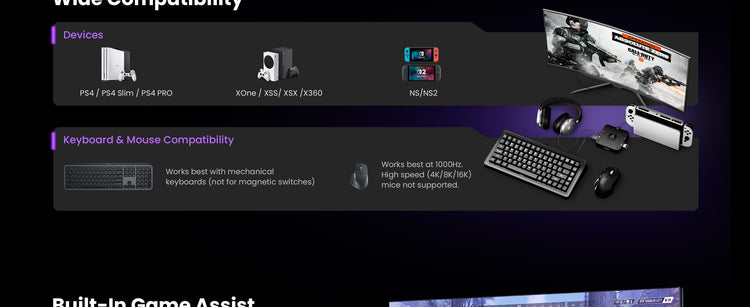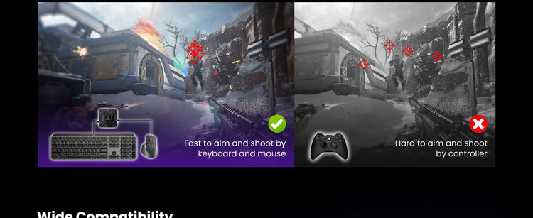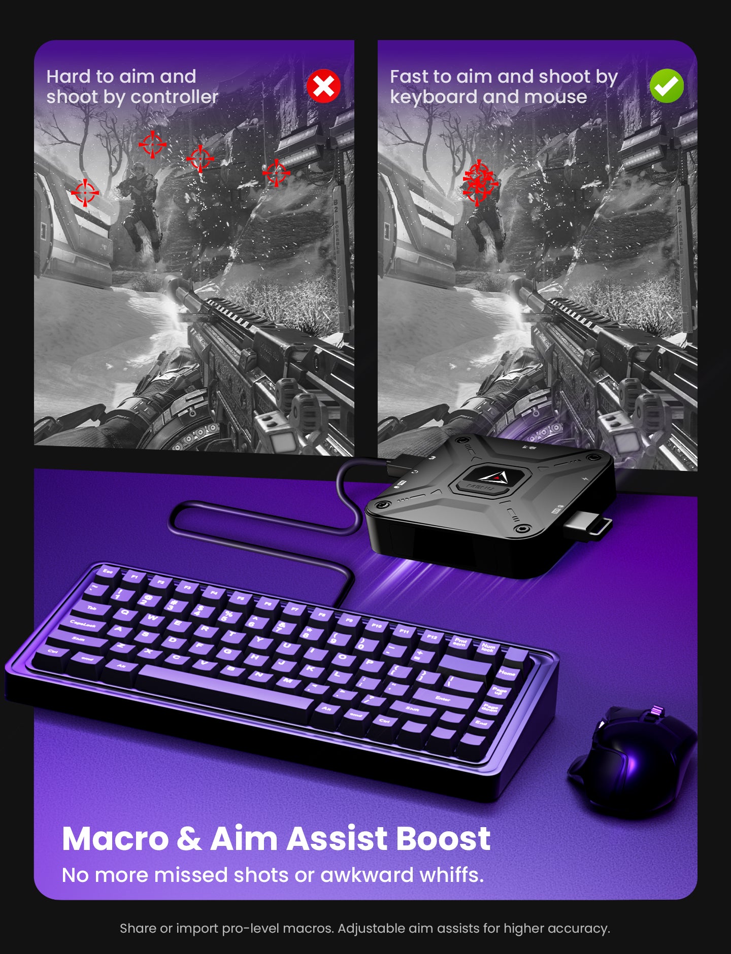 Built-in aim assist enhancer provides controller-like magnetism for higher accuracy.