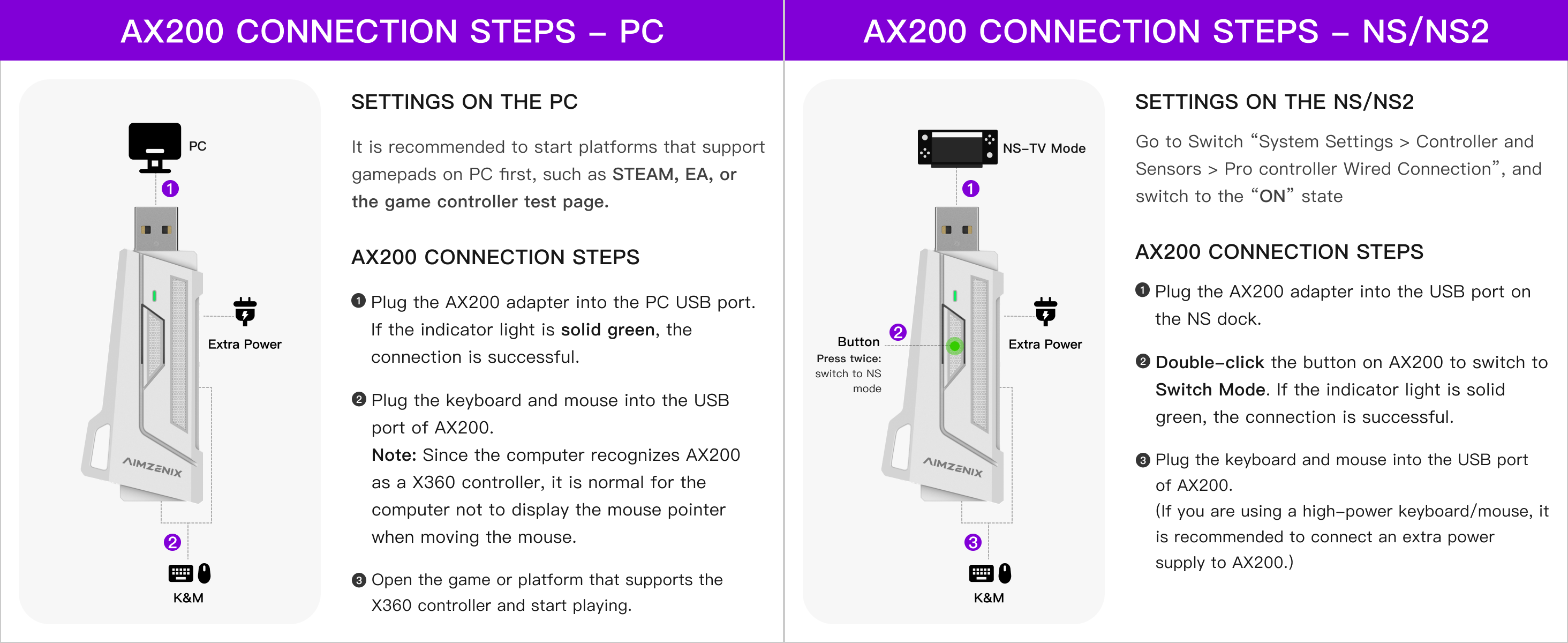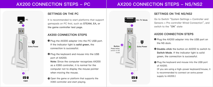 The AX200PRO is compatible with PC and Nintendo Switch (NS).